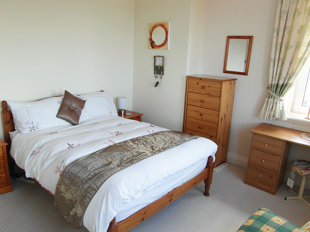 Comfortable double bed, plenty of storage and wonderful views over the beach.